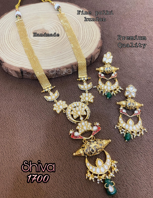 The crescent-inspired elements, intricate enamel accents, and delicate pearl detailing add depth and heritage charm, while the subtle green stone drop brings a refined pop of color. Paired with matching statement earrings, this set effortlessly blends traditional grandeur with wearable sophistication.