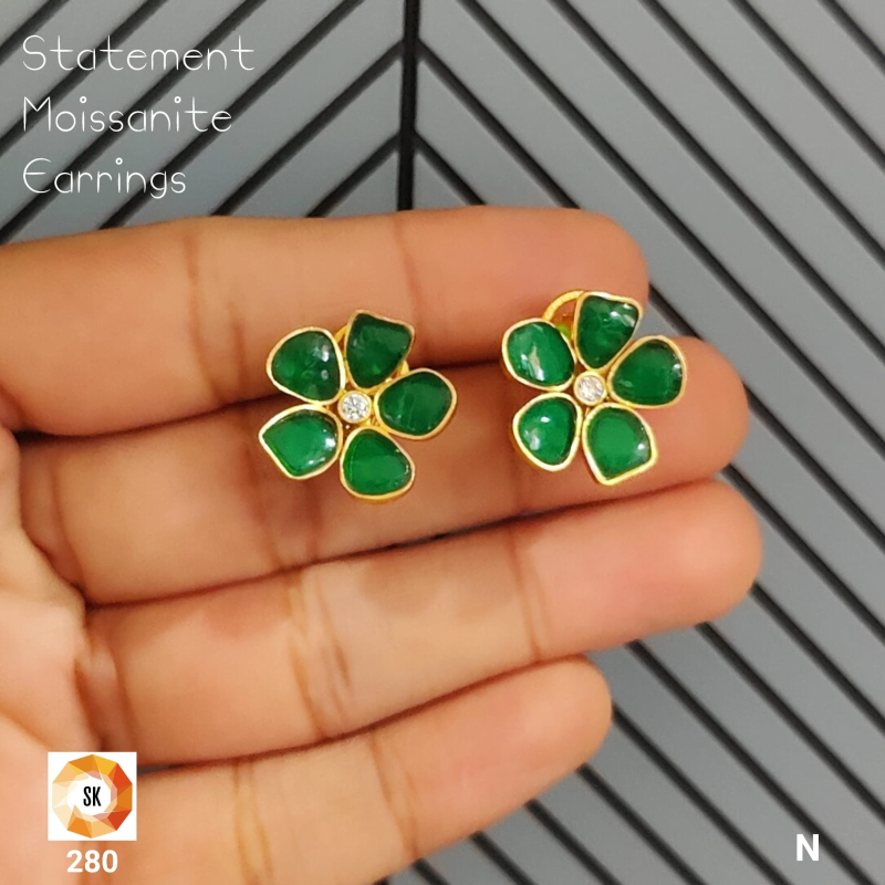The Bloom Moissanite Stud Earrings are designed for understated elegance with a bold edge. Crafted in a delicate floral silhouette, each petal features moissanite stones framed in a refined gold-tone setting. At the center, a subtle white moissanite accent adds just the right hint of sparkle, creating a beautiful contrast against the dark petals.