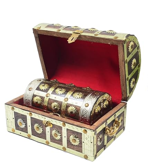 The domed lid and secure metal latch add both functionality and old-world charm. Ideal for storing jewellery, valuables, keepsakes, or important documents, this chest also works beautifully as a decorative accent for living rooms, bedrooms, or study spaces.