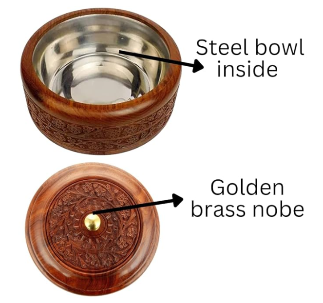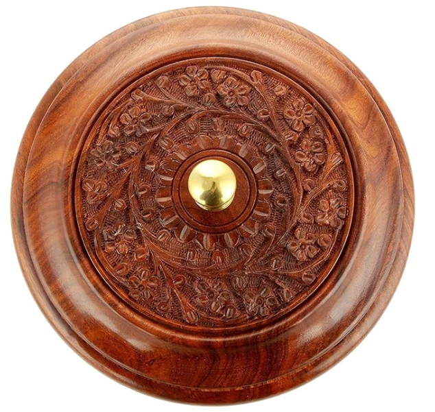 A handcrafted wooden chapati box with intricate carving and a sturdy lid, designed to keep chapatis fresh and warm while adding a traditional touch to your dining space.