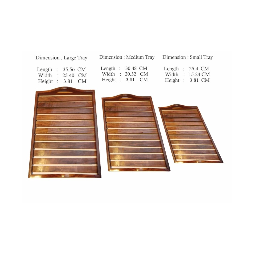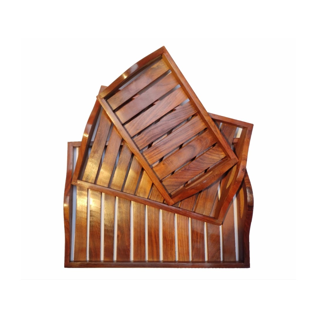 Handcrafted Sheesham Wood Tray Set of 3