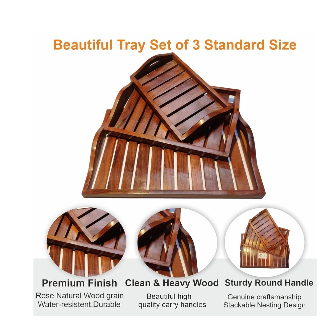 Handcrafted Sheesham Wooden Serving Tray Set of 3